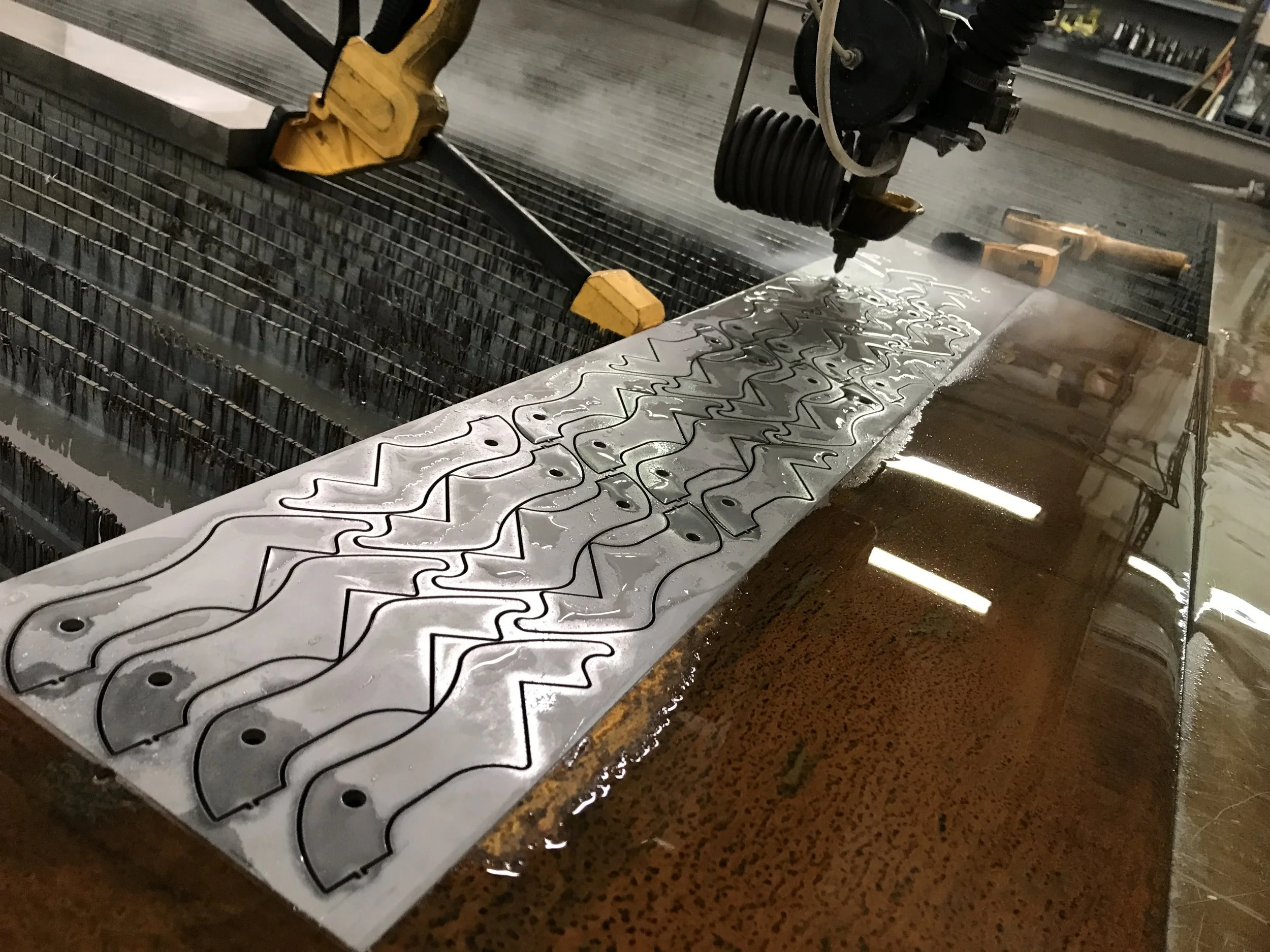 • Our special blades are cut with water.